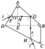 (2)解:(1)设光在AD面的入射角、折射角分别为i、r r=30°,