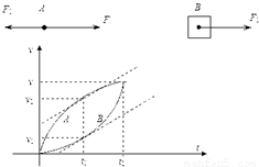 两物体运动的v-t图象如图所示,tl时刻,两物体加速度相等,斜率相同,速度差最大,t2时刻两物体的速度相等,A速度达到最大值,