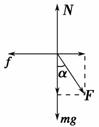 如图2-2-19所示,力F垂直作用在倾角为α的三角滑块上,滑块没被推动,则滑块受到地面的静摩擦力的大小为 ( ).