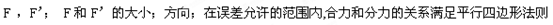 如图所示是某同学做《探究合力跟分力的关系》实验时作出的图,其中A为固定橡皮条的固定点,O为橡皮条 与细绳的结合点,图中______________是F1、F2合力的理论值,________________是合力的实验值,需要进行比较的是_____和____________________,通过本实验,可以得出结论: