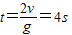 【答案】分析:先根据速度时间公式得出上升和下降的总时间,然后根据V=Qt计算处于空中的水的体积.