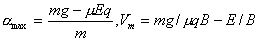 如图所示,套在很长的绝缘直棒上的小球,其质量为m、带电量是+q,小球可在棒上滑动,将此棒竖直放在互相垂直,且沿水平方向的匀强电场和匀强磁场中,电场强度是E,磁感强度是B,小球与棒的摩擦系数为μ,求小球由静止沿棒下落的最大加速度和最大速度.(设小球带电量不变)![]()