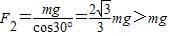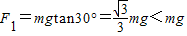 如图所示,重物的质量为m,轻细绳AO的A端和BO的B端固定,平衡时AO水平,BO与水平方向的夹角为60°.AO的拉力F1和BO的拉力F2与物体重力的大小关系是( )A.F1>mg