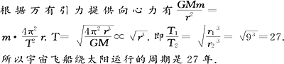 宇宙飞船进入一个围绕太阳的近乎圆形的轨道运动,如果轨道半径是地球轨道半径的9倍,那么宇宙飞船绕太阳运行的周期是