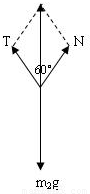 再以m2球为研究对象,分析受力情况,如图,由平衡条件可知,绳的拉力T与支持力N的合力与重力大小相等、方向相反,作出两个力的合力,由对称性可知,T=N,