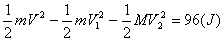 = =96(J) Δ 说明子弹没有穿出木块的假设不能成立,而肯定子弹是穿出木块的,做有 Mv=mV1+MV2(1) 根据能量关系有