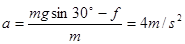 一个质量m=75kg滑雪的人,以v0=2m/s的初速度沿山坡匀加速滑下,山坡的倾角θ=300,且山坡足够长,已知滑雪人受到的阻力f=75N(包括摩擦和空气阻力),求5s末的速度和5s内的位移。(g=10m/s)