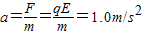 【答案】分析:(1)对小球受力分析,受到重力、支持力和电场力,根据牛顿第二定律列式求加速度即可;