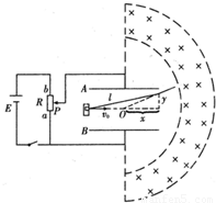 点评:本题主要考查了带电粒子分别在电场和磁场中的运动情况,当两极间加上电压时,粒子做类平抛运动,根据类平抛运动规律求解问题.粒子在匀强磁场中的运动,要掌握住半径公式,画出粒子的运动轨迹后,几何关系就比较明显了.