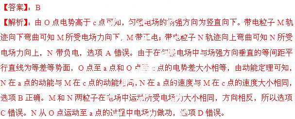 £¨2013°²»Õ½ÄÏʮУÃþµ×£©ÈçͼËùʾ£¬Í¼ÖÐÐéÏßΪÔÈÇ¿µç³¡ÖÐÓ볡ǿ·½Ïò´¹Ö±µÄµÈ¼ä¾àƽÐÐÖ±Ïߣ¬Á½Á£×ÓM¡¢NÖÊÁ¿ÏàµÈ£¬Ëù´øµçÁ¿ÊýÖµÒ²ÏàµÈ£¬ÏÖ½«M¡¢N´ÓÐéÏßÉÏOµãÒÔÏàͬËÙÂÊÉä³ö£¬Á½Á£×ÓÔڵ糡ÖÐÔ˶¯µÄ¹ì¼£·Ö±ðÈçͼÖÐÁ½ÌõʵÏßËùʾ¡£µãa¡¢b¡¢cΪʵÏßÓëÐéÏߵĽ»µã£¬ÒÑÖªOµãµçÊÆ¸ßÓÚcµã¡£Èô²»¼ÆÖØÁ¦£¬Ôò £¨ £©
