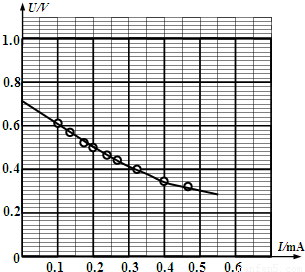 £¨2£©ÓɱíÖÐÊý¾ÝÀûÓÃÃèµã·¨¿ÉµÃ³öU-IͼÏó£¬Í¼ÏóÓë×Ý×ø±êµÄ½»µãΪµçÔ´µÄµç¶¯ÊÆ£»µ±µçÁ÷СÓÚ0.3mAʱ£¬Í¼Ïó¿ÉÒÔ¿´×÷Ö±Ïߣ¬Í¼ÏóµÄбÂʱíʾµç³ØµÄÄÚ×裮