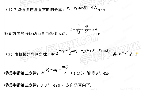 如图所示,一个半径R=1.0m的圆弧形光滑轨道固定在竖直平面内,轨道的一个端点B和圆心O的连线与竖直方向夹角θ=60°,C为轨道最低点,D为轨道最高点.一个质量m=0.50kg的小球(视为质点)从空中A点以v0=4.0m/s的速度水平抛出,恰好从轨道的B端沿切线方向进入轨道.重力加速度g取10m/s2.试求:[来源:ZXXK]