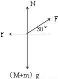 地面对斜面体M的摩擦力大小为f=Fcos30°=30×