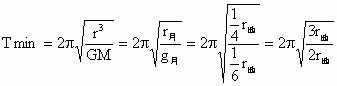 解:根据万有引力定律和牛顿第二定律得 解得 星球表面的重力加速度 g、小星球质量M、星球半径r的关系式故 代入数据解得 环月卫星最小周期为 1.72h,故该报道是假新闻.人造环月卫星的向心力就是卫星所受的万有引力.月球表面附近的卫星运动周期是环月卫星的最小周期. |