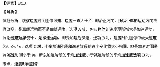 利用速度传感器与计算机结合,可以自动作出物体运动的图像。某同学在一次实验中得到的运动小车的 v一t图像如图所示,由图可知