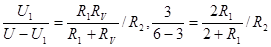 如图,AB两端的电压U=6 V,用内阻为2 kΩ的电压表测R1两端电压,示数为3.00 V;测R2两端的电压,示数为1.20 V;求R1、R2的值.
