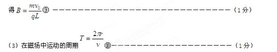 联立⑥⑧⑩粒子在磁场中运动时间为