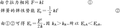 A的弹性势能大