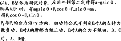 | A、B对A的支持力为零 | B、B对A的支持力大小等于A的重力 | C、B对A的摩擦力为零 | D、B对A的摩擦力水平向左 |
