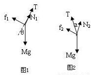 位置2:斜面对物体的支持力N2=Mgcosθ-Tcosα=Mgcosθ-mgcosα