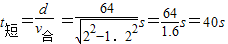 一只小船在静止的水中行驶的最大速度v1=2.0m/s,现使此船在水流速度大小v2=1.2m/s的河中行驶(设河水以稳定的速度沿平行河岸方向流动,且整个河中水的流速处处相等).若河宽为64m且河岸平直,则此船渡河的最短时间为 s;要使小船在渡河过程中位移最小,则小船渡河的时间为 s.