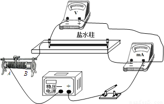 某学习小组为探究导电溶液的电阻在体积相同时,电阻值与长度的关系.选取了一根乳胶管,里面灌满了盐水,两端用粗铜丝塞住管口,形成一段封闭的盐水柱.进行了如下实验:(1)该小组将盐水柱作为纯电阻,粗测其电阻约为几千欧.现采用伏安法测盐水柱的电阻,有如下实验器材供选择: