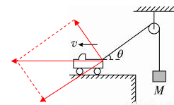 如图所示,一汽车沿水平方向运动,当运动到某点时,绳与水平方向的夹角为θ,若此时车的速度为v,则物体M的速度大小是