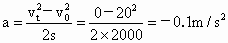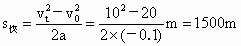 设快车刹车后的加速度为 a.由 得 快车速度由 20m/s减小10m/s时向前滑行的位移