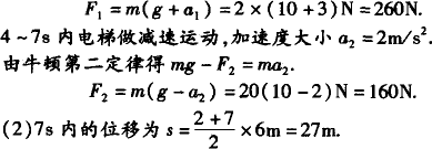 (2)整个运动过程中,电梯通过的位移为多少?(g取10 m/s2)