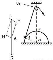 由题缓慢地将小球从A点拉到B点过程中,O1O,AO不变,O1A变小