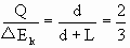 子弹损失的动能等于子弹克服阻力所做的功,子弹的位移为打入深度为d与木块移动距离L之和,有 ΔEk=F(d+L) ① 产生的热能为Q=Fd ② 解式①②,得 选择B 【评析】要正确区分摩擦力对单个物体做的功和摩擦力对系统做的功. |