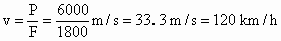 在以额定功率 P=60kW行驶时,汽车受到的阻力是F=1800N.由于P=Fv,所以以较低的速度行驶时, v=54km/h=15m/s于是 P=Fv=1800×15W=27kW. |