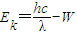 ,然后根据爱因斯坦光电效应方程,即可求解.