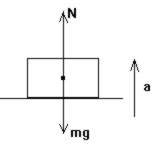 解: 断前 ∵ N - mg = ma ∴ N = m(g + a) = 300(N) 断后 a = g ∵ mg - N'= mg ∴ N'= 0