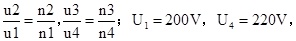 解:由变压器的电压比与匝数之比的关系得: