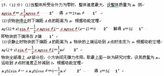 ÈçͼËùʾ£¬Çã½ÇΪ¦ÈµÄÐ±ÃæÉÏÖ»ÓÐAB¶Î´Ö²Ú£¬ÆäÓಿ·Ö¶¼¹â»¬£¬AB¶Î³¤Îª3L£®ÓÐÈô¸É¸öÏàͬµÄС·½¿é£¨Ã¿¸öС·½¿éÊÓΪÖÊµã£©ÑØÐ±Ãæ¿¿ÔÚÒ»Æð£¬µ«²»Õ³½Ó£¬×ܳ¤ÎªL£®½«ËüÃÇÓɾ²Ö¹ÊÍ·Å£¬ÊÍ·Åʱ϶˾àAΪ2L£®µ±Ï¶ËÔ˶¯µ½AÏÂÃæ¾àAΪL/2ʱÎï¿éÔ˶¯µÄËÙ¶È´ïµ½×î´ó£®