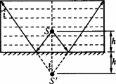 点光源S通过平面镜所成像为 tan i=(L/2)/(H+h)≤tani0,L=2H, 得到h≥( 正确结果是H>h≥(