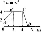 (1)AB、CD段的v-t图是倾斜直线,说明这两段时间速度是均匀变化的,故质点在这两段作匀变速直线运动(AB匀加、CD匀减);BC段是平行于x轴直线,作匀速直线运动. (2)因为v-t图线斜率大小等于加速度大小,故 aAB=tanaAB= (3)由图象知2s末速度是4m/s.