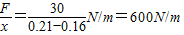 解答:解:根据胡克定律得,k=