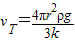 解答:解:雨滴下落时受两个力作用:重力,方向向下;空气阻力,方向向上,当雨滴达到终极速度vT后,加速度为零,二力平衡,用m表示雨滴质量,有