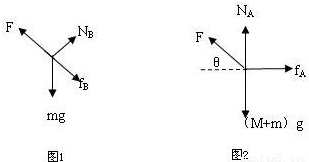 解:A、以B为研究对象,分析受力情况,作出力图如图1.根据平衡条件得到,A对B的支持力NB和摩擦力fB的合力大小为F合=