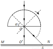 【答案】分析:由全反射知识及几何知识可求 得全反射的临界角;由几何关系可求得光点到O′之间的距离.