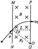 如图所示,在真空区域内,有宽度为L的匀强磁场,磁感应强度为B,磁场方向垂直纸面向里,MN、PQ是磁场的边界.质量为m,带电量为-q的粒子,经电压U1加速后沿着与MN夹角为θ(0<θ<90°)的方向垂直磁感线射入匀强磁场B中,粒子刚好没能从PQ边界射出磁场,粒子加速前速度认为是零,不计重力的影响.(1)求加速电压U1;