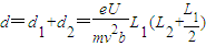 (2)当极板间仅有偏转电场 时,电子以速度v进入后,竖直方向作匀加速运动,加速度为
