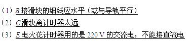 如图所示,是某次利用气垫导轨探究加速度与力、质量关系的实验装置安装完毕后的示意图,图中A为砂桶和砂,B为定滑轮,C为滑块及上面添加的砝码,D为纸带,E为电火花计时器,F为蓄电池、电压为6 V,G是电键,请指出图中的三处错误:
