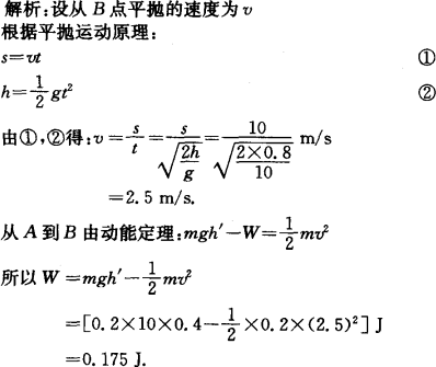 =0.4 m,B端切线水平,B点与地面的高度差h=0.8 m,现将质量m=0.2 kg的小球从A点由静止释放,落至地面上的C点,已知C、D间距离s=1.0 m,求:小球沿曲面上滑过程中克服摩擦力所做的功.(g取10 m/s2,不计空气阻力)