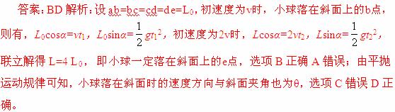 (2013四川绵阳一诊)如图所示,足够长的斜面上有a、b、c、d、e五个点,ab=bc=cd=de,从a点水平抛出一 个小球,初速度为v时,小球落在斜面上的b点,落在斜面上时的速度方向与斜面夹角 为θ;不计空气阻力,初速度为2v时