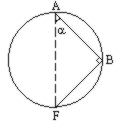 解: 如图: 设质点质量为m, 沿任意弦AB滑下, 圆直径为d, 弦AB与竖直方向夹角为α, 则AB=dcosα 质点下滑加速度为 a=gsin(90°-α) =gcosα 设下滑时间为t则