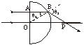 两束平行的细激光束,垂直于半圆柱玻璃的平面射到半圆柱玻璃上,如图所示。已知其中一条光线沿直线穿过玻璃,它的入射点是O;另一条光线的入射点为A,穿过玻璃后两条光线交于P点。已知玻璃截面的圆半径为R,OA=