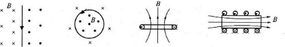 试在图中,由电流产生的磁场方向确定导线或线圈中的电流方向.